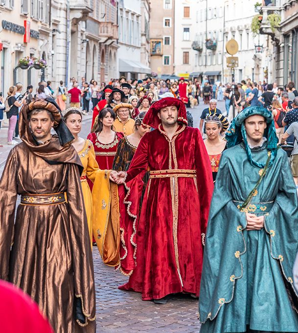 Ogni anno, oltre 500 figuranti in costume danno vita a uno spettacolo davvero suggestivo delle Feste Vigiliane, il Corteo Storico, un’imperdibile sfilata che ci fa fare un tuffo nel passato tra dame, cavalieri e giullari.