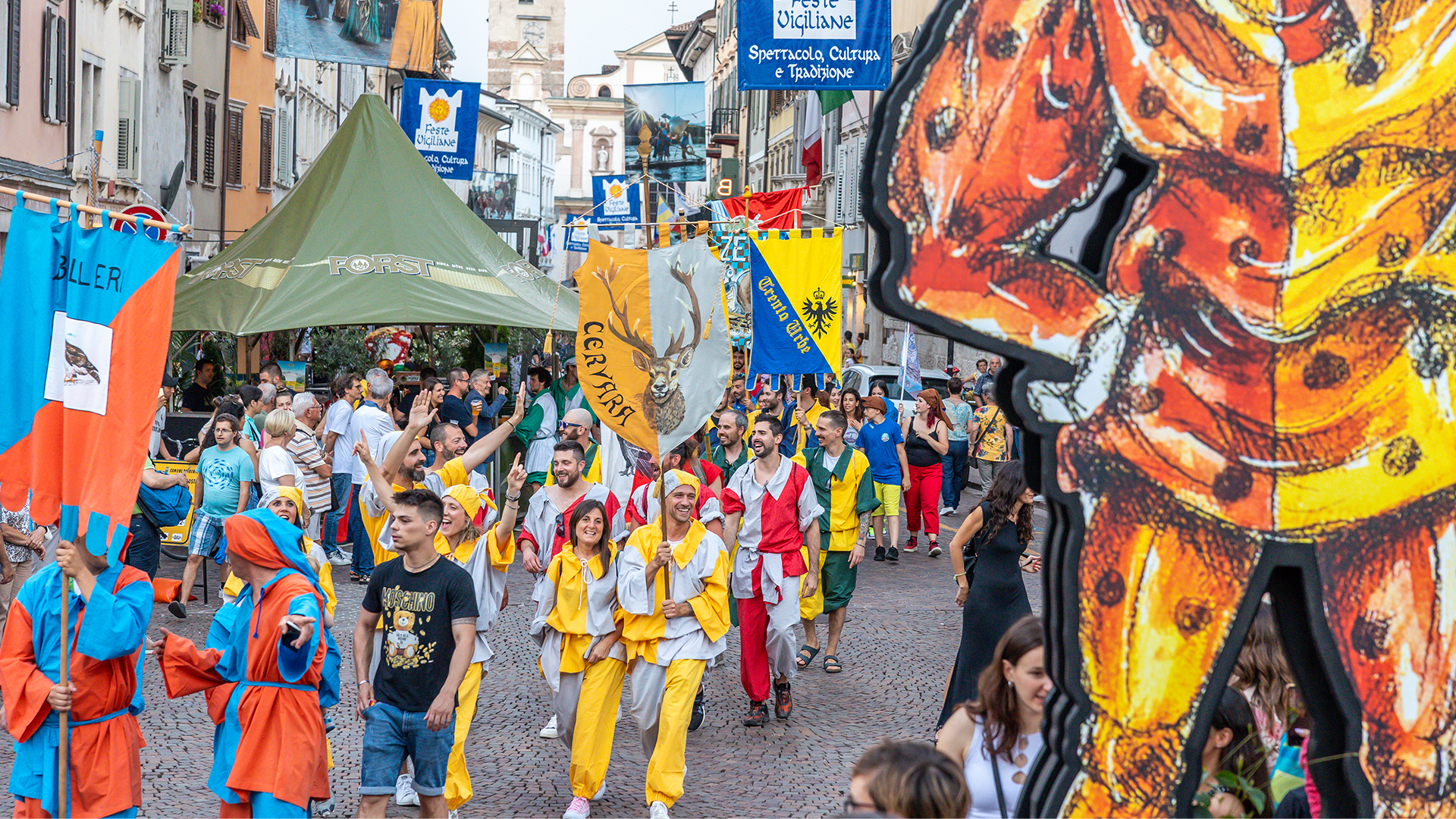 La sfilata dei figuranti in sfarzosi abiti realizzati in broccato e velluto ripercorre la storia del Trentino e delle sue Valli. Parte dal Castello del Buonconsiglio, sede per più di 500 anni del governo principesco, e raggiunge Piazza Duomo attraversando le principali vie del centro storico sotto gli occhi estasiati degli spettatori, che per una serata, come in una macchina del tempo, vengono riportati indietro nei secoli. Dame e cavalieri, supportati da un popolo di cortigiani e contadini ci riportano nell’immaginario di un’epoca rinascimentale, testimonianza fedele di vita ai tempi del principe Bernardo Clesio.
